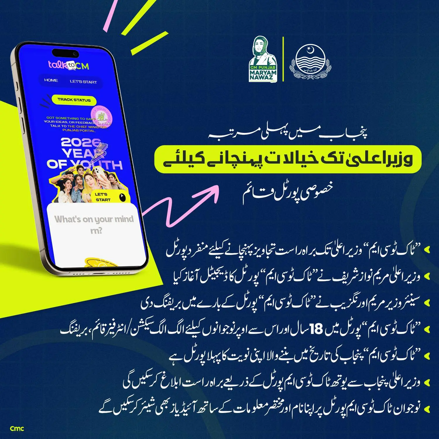 Visit the official website: talktocm.punjab.gov.pk